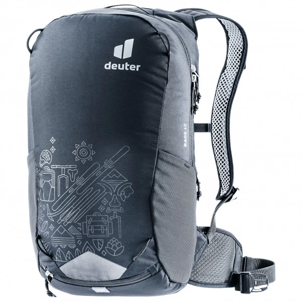 A zipped side pocket offers space for your smartphone, while reflective elements on the outside increase your visibility in off-road terrain. Plus, the elasticated inner compartment is equipped with an extra zipped pocket. Thanks to the removable rain cover on the underside, you are optimally protected against rain showers in any situation with the Deuter Race 12.