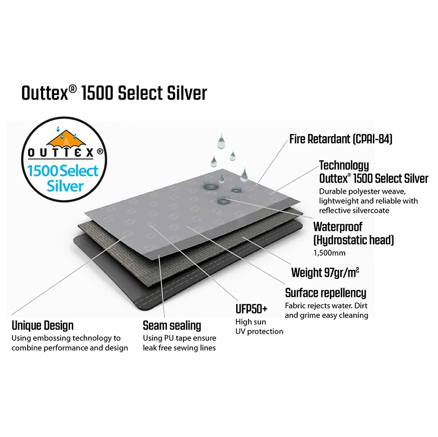 | Fabric properties | waterproof, UV-resistant, flame-retardant |